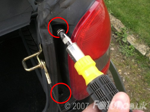 Fully open the boot and loosen the 2 plastic nuts with a 10mm hex socket.