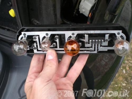 Replace the offending lamp. Remember the top lamp on each cluster is the two stage break / side light. The one beneath it is an additional side light.