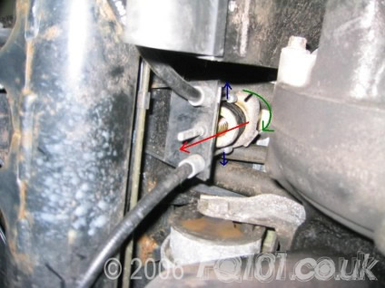 Whilst under there, it may be advantageous to drop the front floor pan (6 x 8mm bolts), and unplug the lateral g-force sensor. The wire attached to this needs to be fed right back through to the engine.