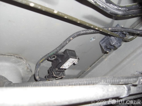 Remove one securing bolt from the sensor and loosen the other slightly.