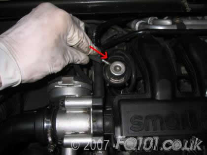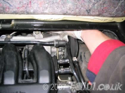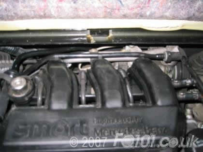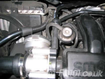 If you have air-conditioning, you have even less space to manoeuvre, but the breather pipe connects to the crankcase just to the offside of the a/c pipes.