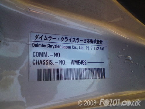 But our suspicions were confirmed when checking the VIN plate... Daimler Chrysler Japan.
