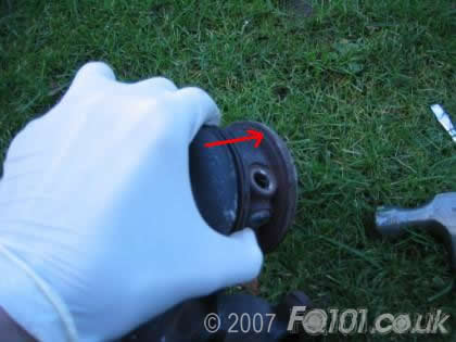 Remove the Compressor housing by undoing the 4x7mm bolts at the back of the housing. (you could mark their position for reassembly).