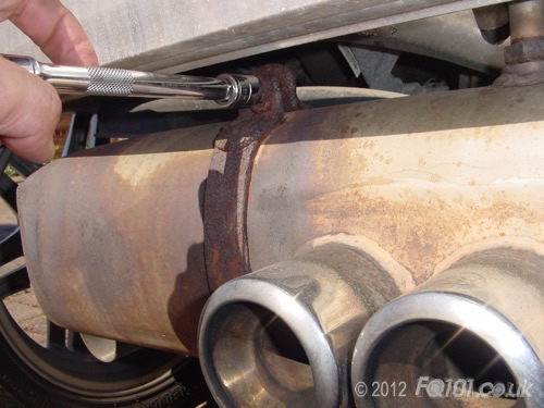 Once you are happy that the exhaust is correctly supported, tighten the two E12 bolts on the gearbox.