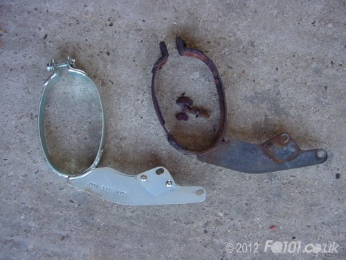 Replacing the strap is fairly straightforward and is worth doing when you have the back off for routine servicing. The strap is shown to the left of the tail pipes.