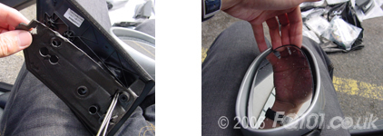 Locate the mirror glass on the motor unit. When it seems to rest centrally within the frame, apply gradual pressure in the centre of the glass. You will find that quite a bit of force is required but in the end, it will click into place.