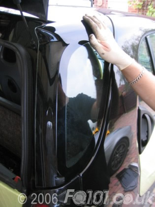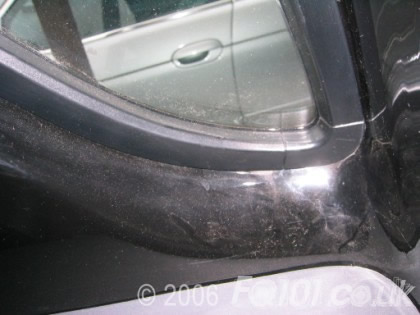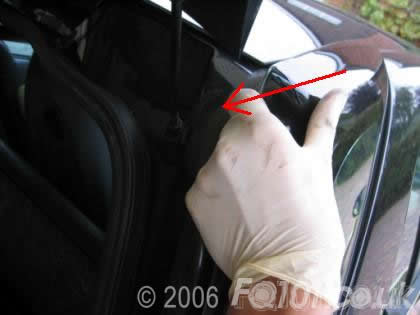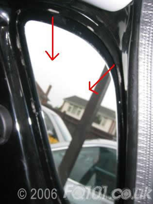 Grip the window on the outside (you can lift it gently at the back edge for a better grip) and pull the window towards the back of the car (it is only held on by one clip).