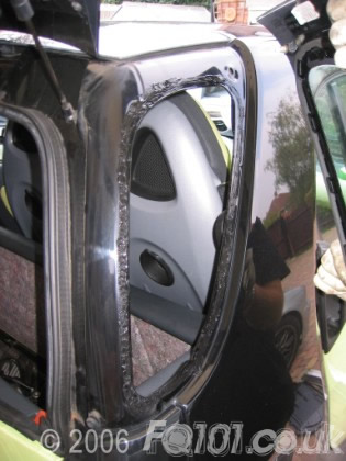 For a permanent and effective fix, evenly spread some silicone sealant around. Then press the window back into the frame firmly to locate the pin back in the tridion.