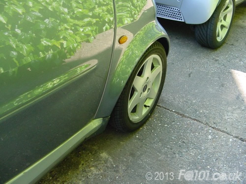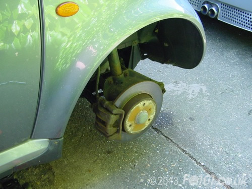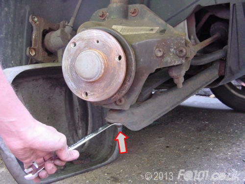 Start by jacking up the front of the car, secure on an axle stand and remove the wheel.