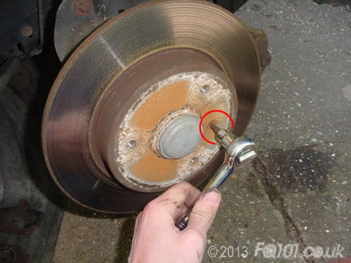 Use a T30 bit to remove the single brake disc retaining bolt.
