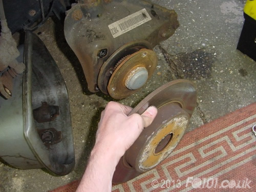 The disc should just lift away from the hub. If it does not, tap the centre with a hammer gently unitil it comes away. We do not recommend using any penetrating oils as you risk contaminating the surface of the brake disc.