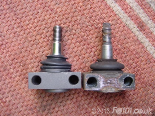 Although the new and old ball joints are from differently manufacturers, it was obvious how warn the old one had become. The shaft had consiberable play and rotated with a grinding sensation. The new one felt completely different.