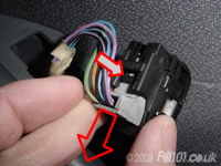 Start by levering out the switch. Be careful not to chew up the plastic frame of the switch module. The switch wiring connector is held by a black retainer shown in the second picture below. You need to carefully lift this up whilst pulling the grey connecter.