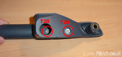 The bracket it held to the handle with two T20 screws which need to be removed.