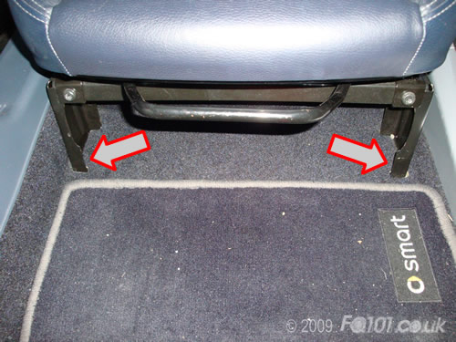 The bracket uses the existing bolts which holds the seat frame to the floor.