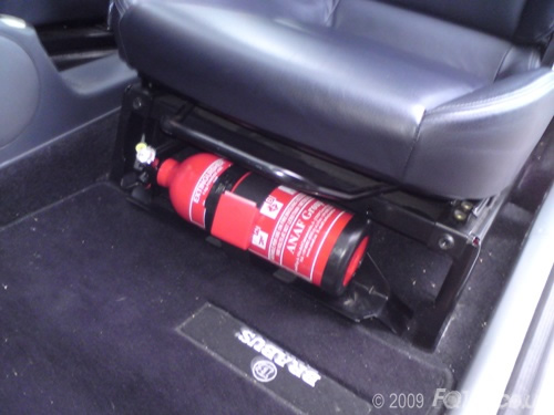The smart fire extinguisher provides a neat installation as it comes with a bracket which bolts onto the front of the passenger seat frame.