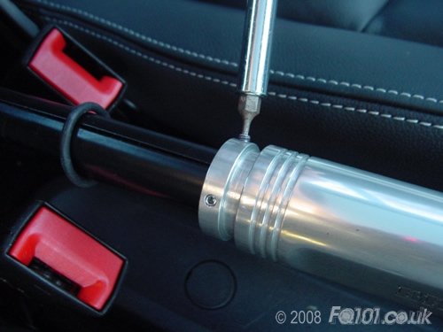 Slide on the Brabus handle. Check that both grub screws are fully open.