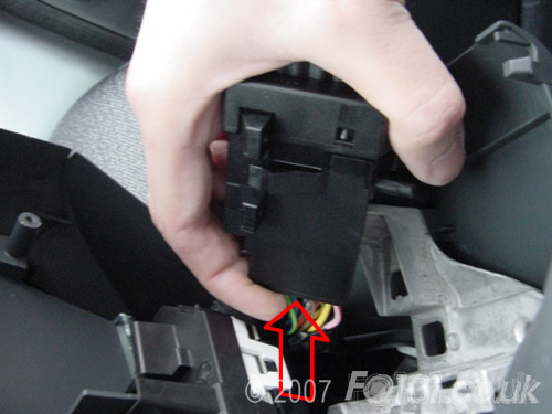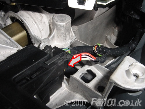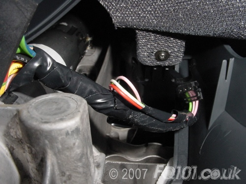 Now that the old wiper stalk is free, look at the wiring and you will notice a small connector that is taped back to the loom. Unwrap the tape that is securing this and straighten out the wires.