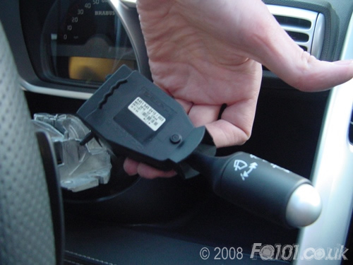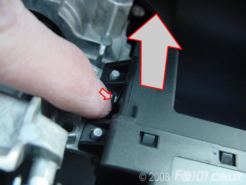 There are two Torx T10 screws located either side of the steering column which need to be freed.