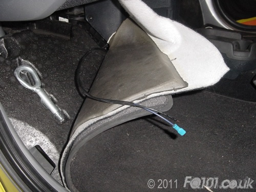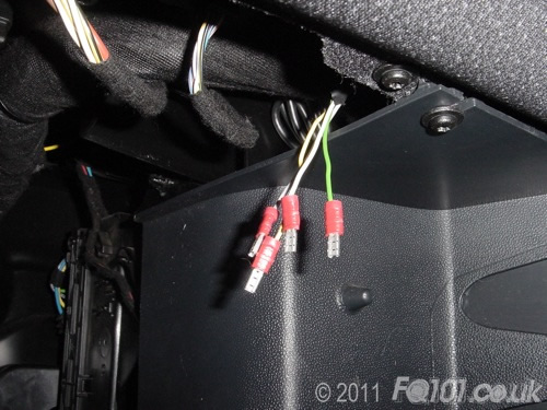 Run the wiring along the edge of the foot well as and tie it to other wire looms where you can. Be careful not to prevent removal of the polystyrene box in the passenger footwell. Keep the wiring close to the centre console.