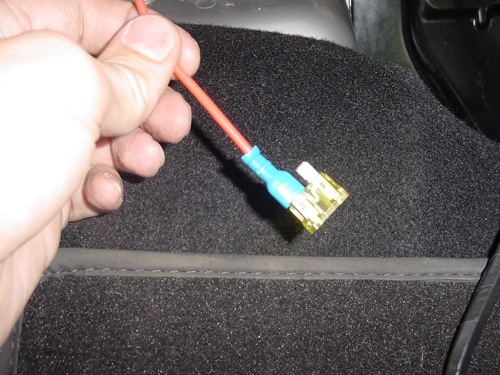We brought both live connections from both seat positions and taped these together with the wires that link to the SAM. On each one we crimped standard sized female spade connectors. This end will connect to the relay module: