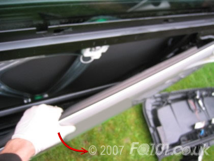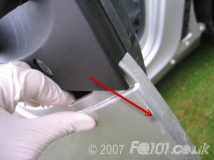 Once the panel is 'free' from the edge of the door frame on the front, pull the door horizontally towards the rear of the car, this releases a lug from underneath the door handle (using the clearance you created earlier).