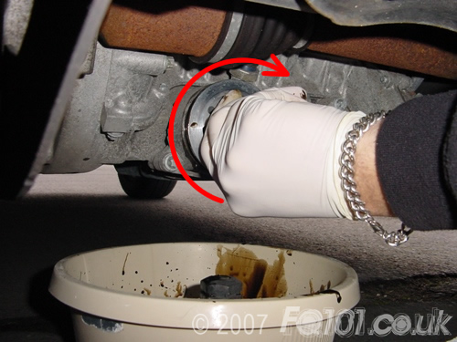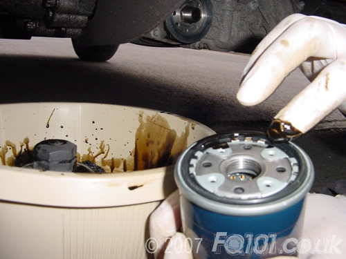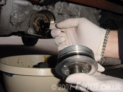 Start by removing the existing filter with a 27mm socket. Ensure that you have a tray under the car to catch the oil.