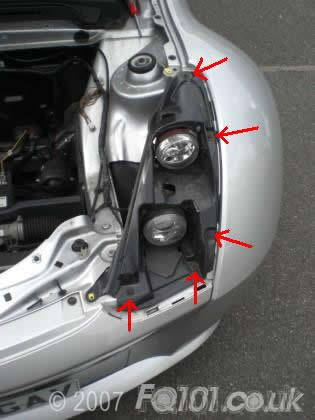 Now remove the main headlamp housing, held on with five T25 torx screws.
