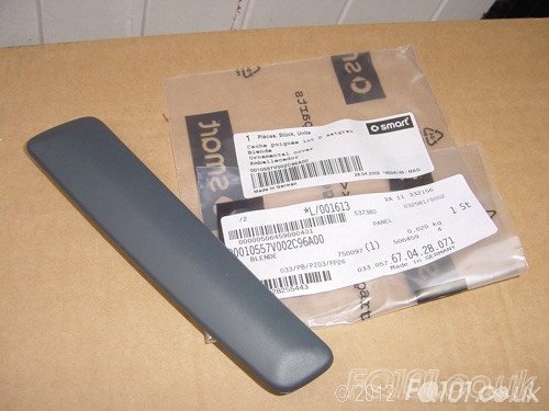 Interior door handle trim in grey plastic.