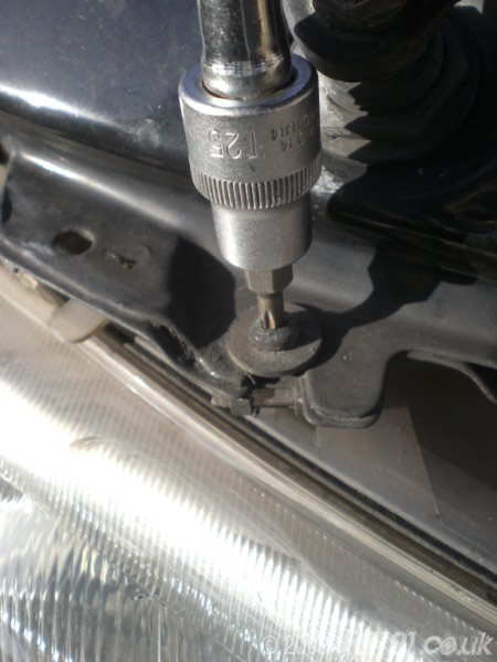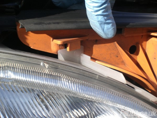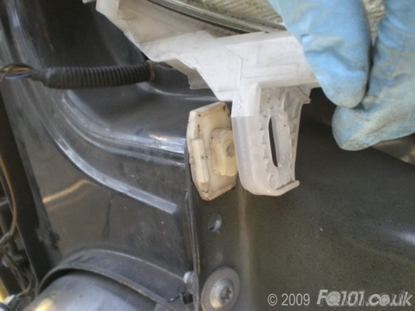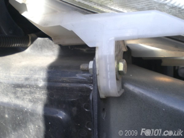The side of the light is held onto a bracket on the chassis using a 10mm nut and bolt; use 2 spanners to remove this.