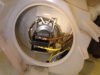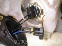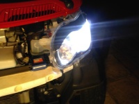 Put the new HID bulb in place and clip down. Connect the black spade connector to the brown and the blue to the yellow.