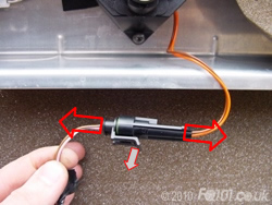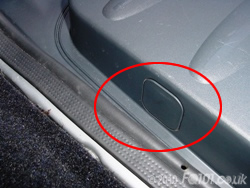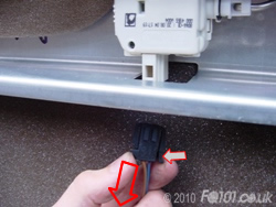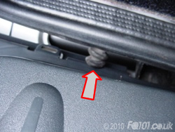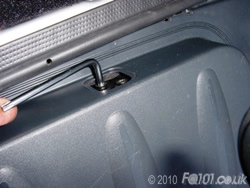 Now open the tailgate and look at the left hand corner by the hinges. You will see the rubber cable grommet. Push this in the direction shown to unclip it from the boot panel. The wiring should now all be free.