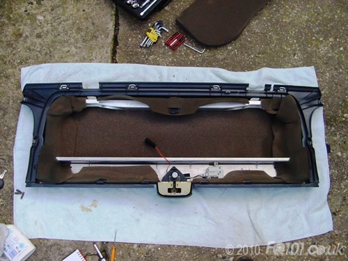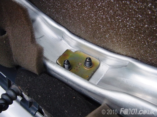 The bolts fix to a plate on the inside of the boot frame. This plate will drop free as you undo the above bolts so make sure you don't lose it!