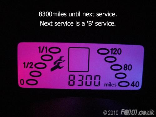 The service schedules for the mk7 fortwo alternate as A, B, A, B etc. With the ignition on, double tap the button on top of the speedometer. You will see the number of miles (or days) until your next service. The number of spanners shown will indicate that the service will either be an A or a B.