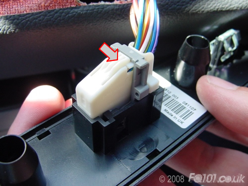 You don't have to disconnect the switch block but you may prefer it out of the way. In order to release the cable connector, push down where shown below: