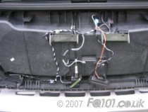 With the boot panel removed you must now disconnect the wiring loom. Remove the connections for the boot catch, the central locking actuator and the door open sensor wire. The boot catch connector needs the connector clip to be levered up, the door sensor connector requires the clip to be pushed in, and the central locking actuator requires the clip to be pulled up.