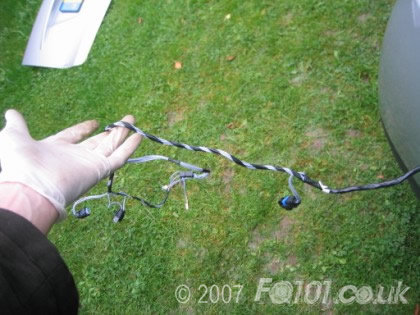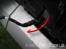 Now unhook the wires from the metal retaining and routing clips and pull the grommit connection out of the guide in the boot panel.