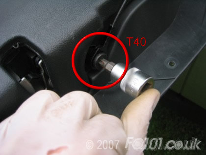 Using a T40 torx bit, remove the bolts for the support cables from the tailgate. You will need to ensure that the boot is supported once these have been removed.