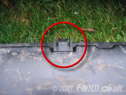 Pull out the back edge of the skirt. There are two clips securing it into the trid.