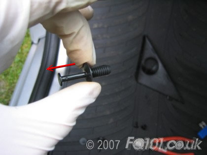 Using the tool, carefully pull out the pin from the plastic rivets.