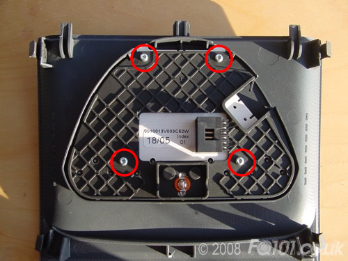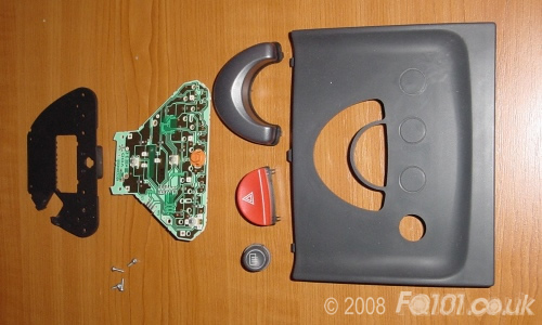 Before replacing the LEDs, the safety triangle needs to be dismantled. Lever the front of the triangle from the centre console in order to free it and unplug the wiring on the back.