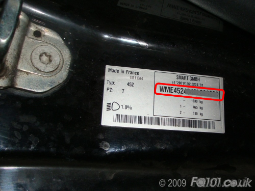 The Vehicle Identification Number (VIN) is required by an MOT station when the time is due for your Roadster's annual checkup. However, if you take the car to an MOT station that isn't familiar with smarts, they may struggle to locate the VIN and ask you. For your information, the VIN in the Roadster is located in two places.